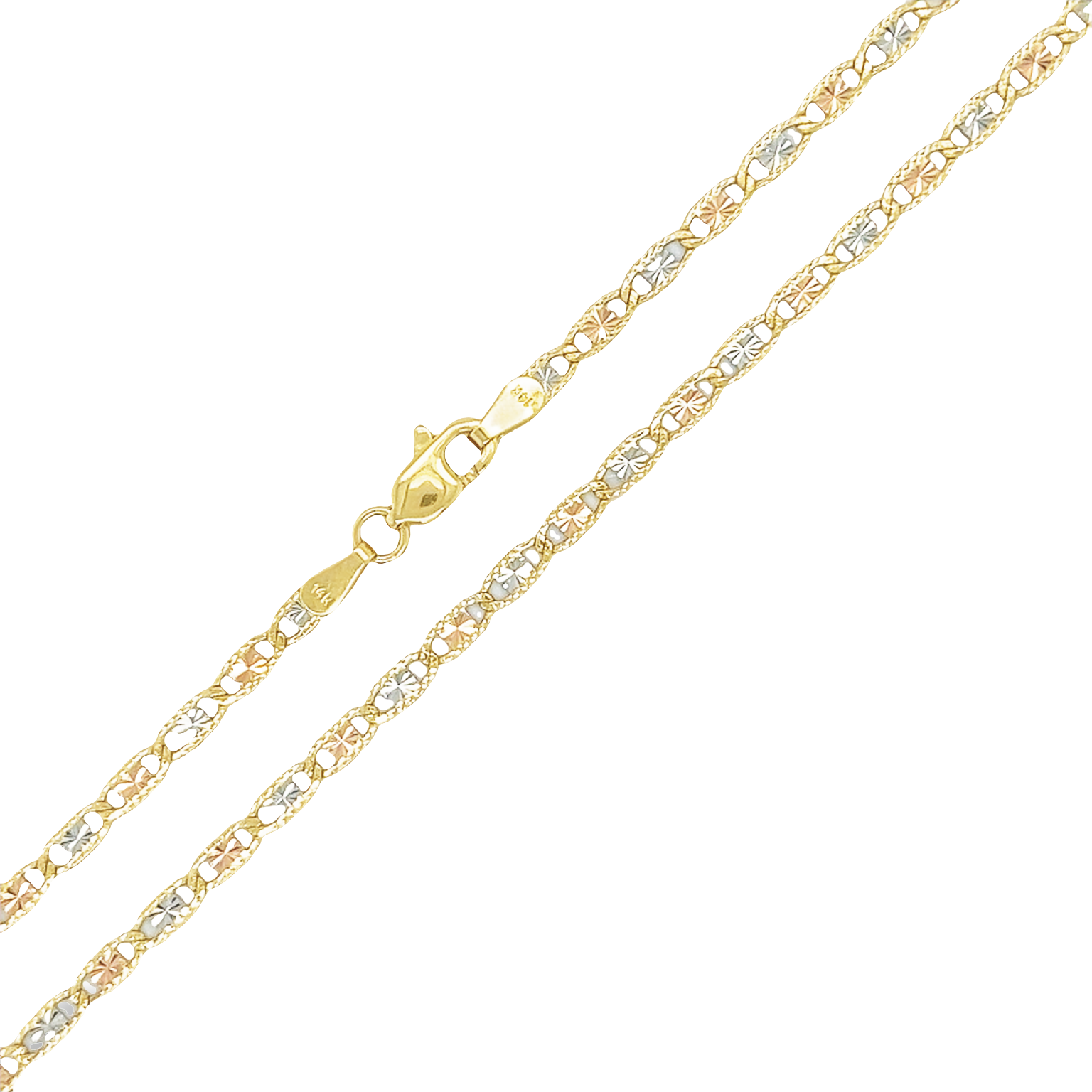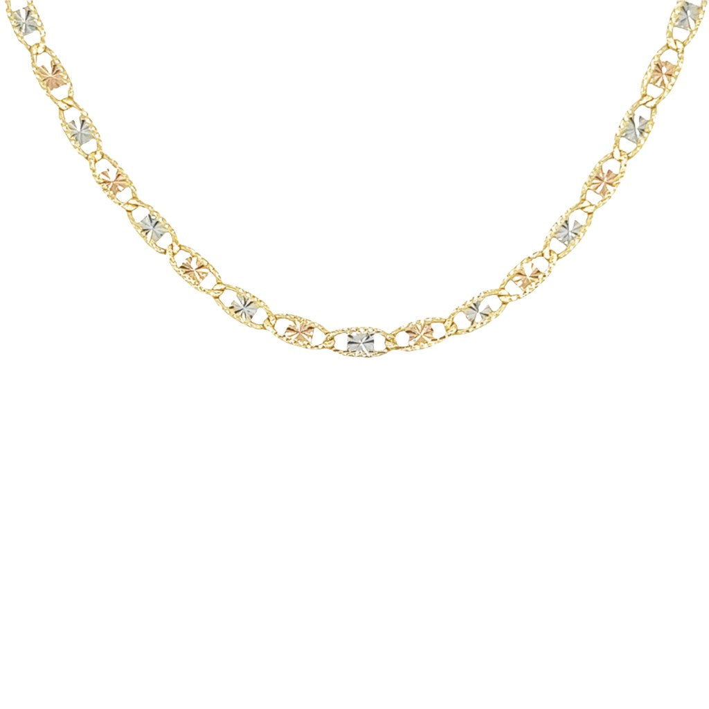 Yellow 14 Karat Solid Florentino Necklace Length 16 Weight: 4.2 MM: 2.5 Finish: Tricolor