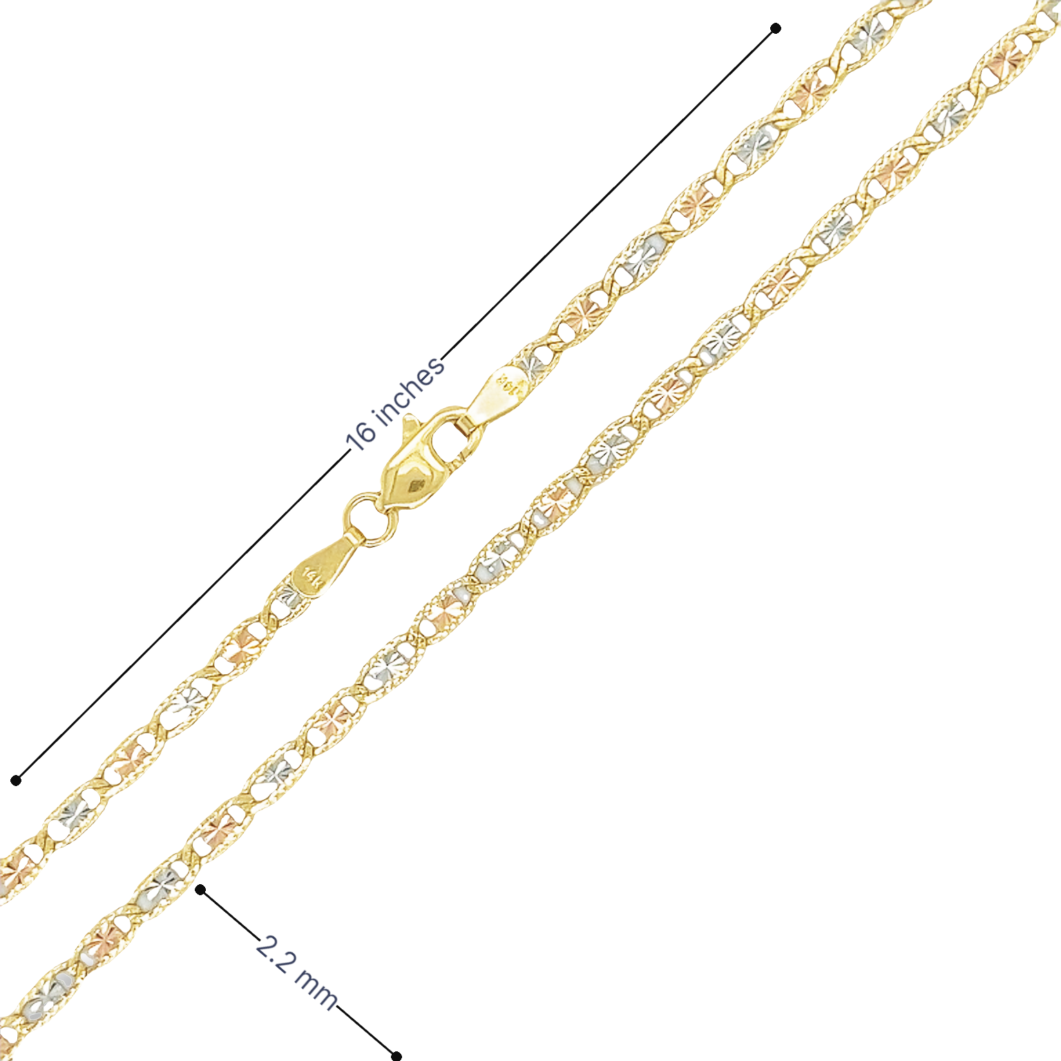 Yellow 14 Karat Solid Florentino Necklace Length 16 Weight: 4.2 MM: 2 Finish: Tricolor
