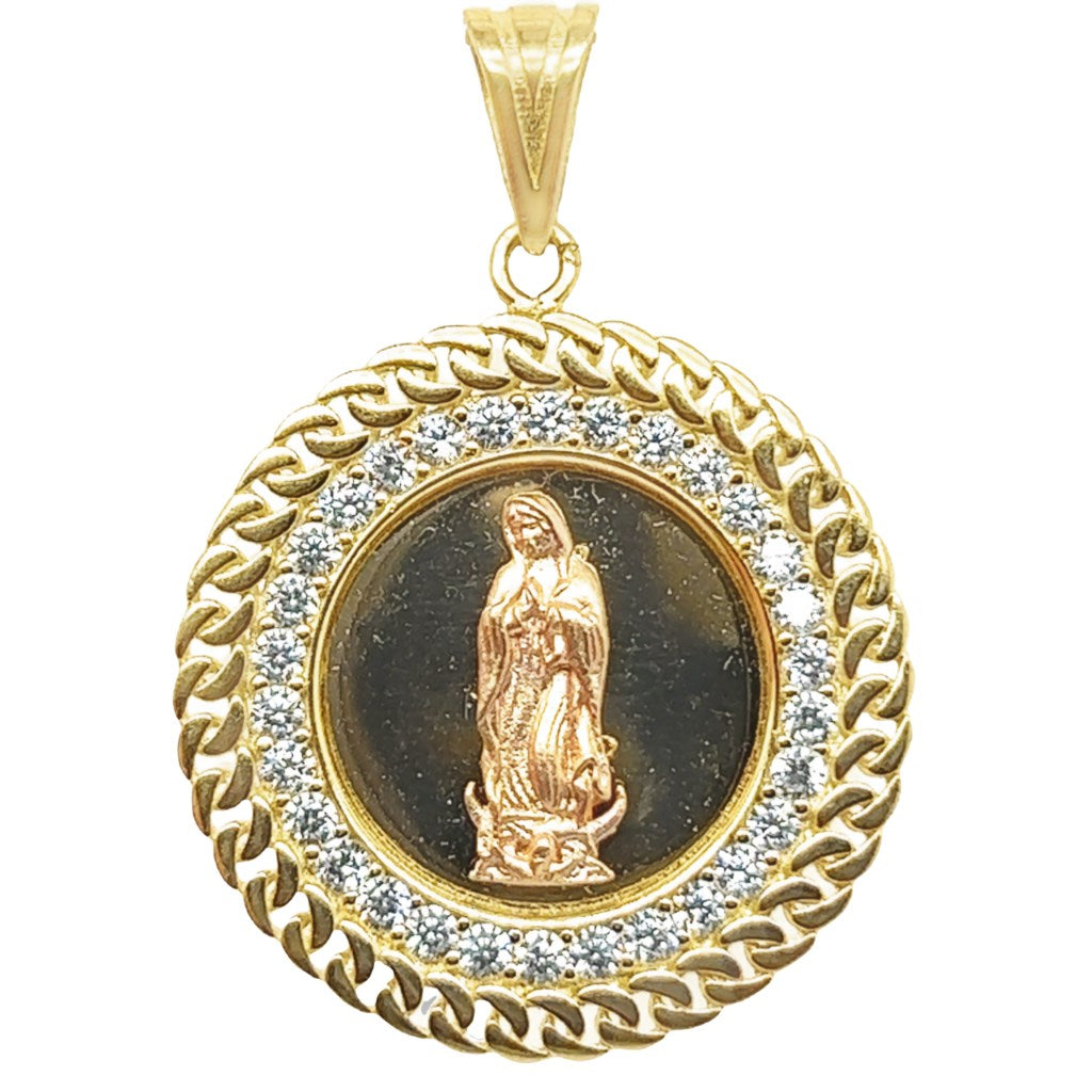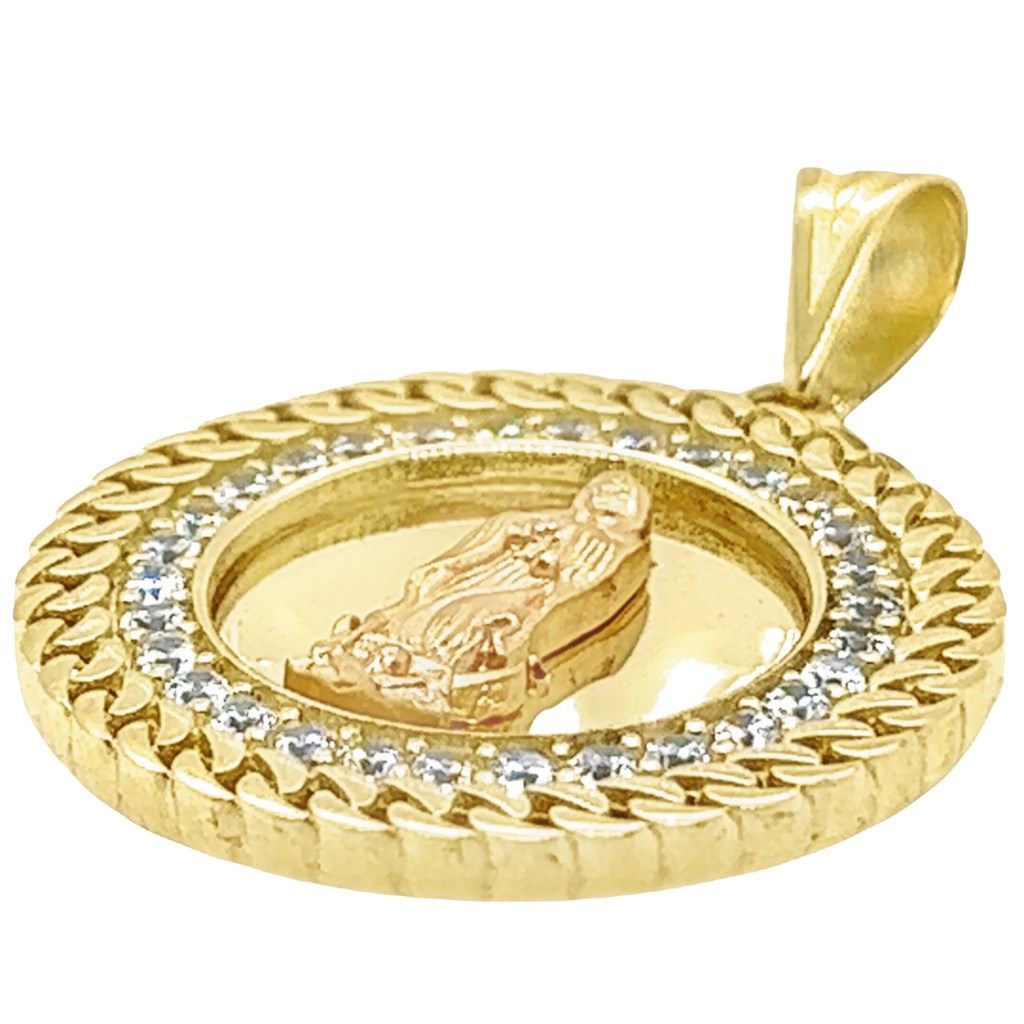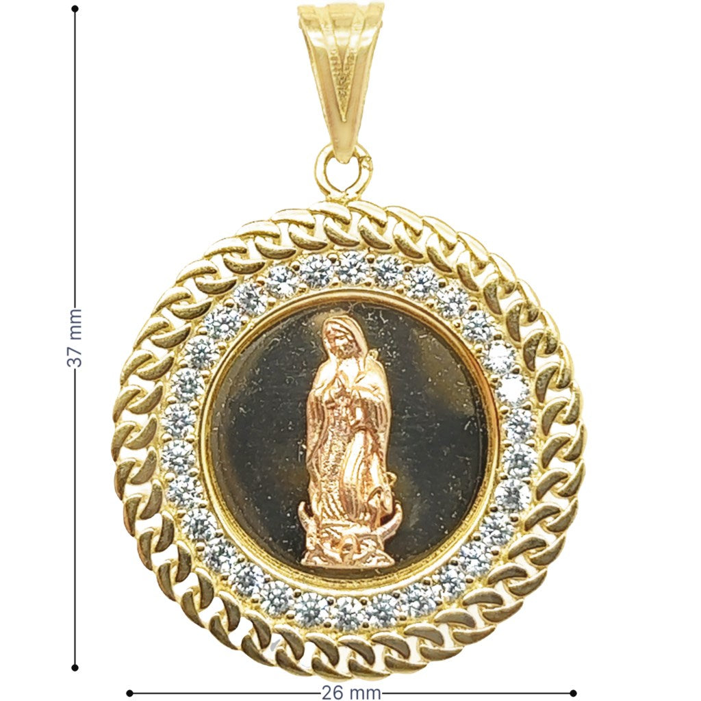 Yellow 14 Karat Virgen Charms With R Cubic Zirconiums Weight: 5.4 MM: 37 Lady of Guadalupe / Virgen de Guadalupe