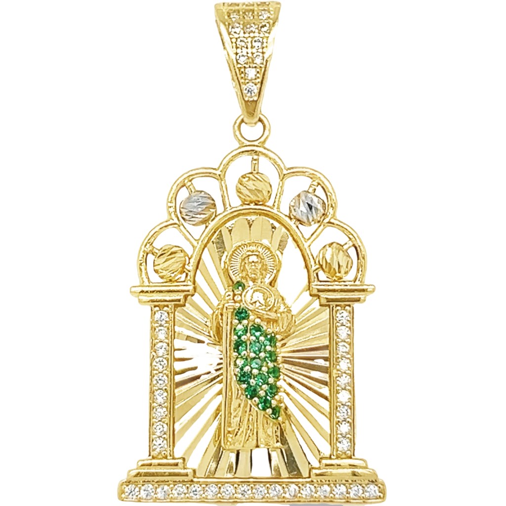 Yellow 14 Karat Religious Charms With R Cubic Zirconiums Weight: 5 Mm: 38 Saint Jude / San Judas