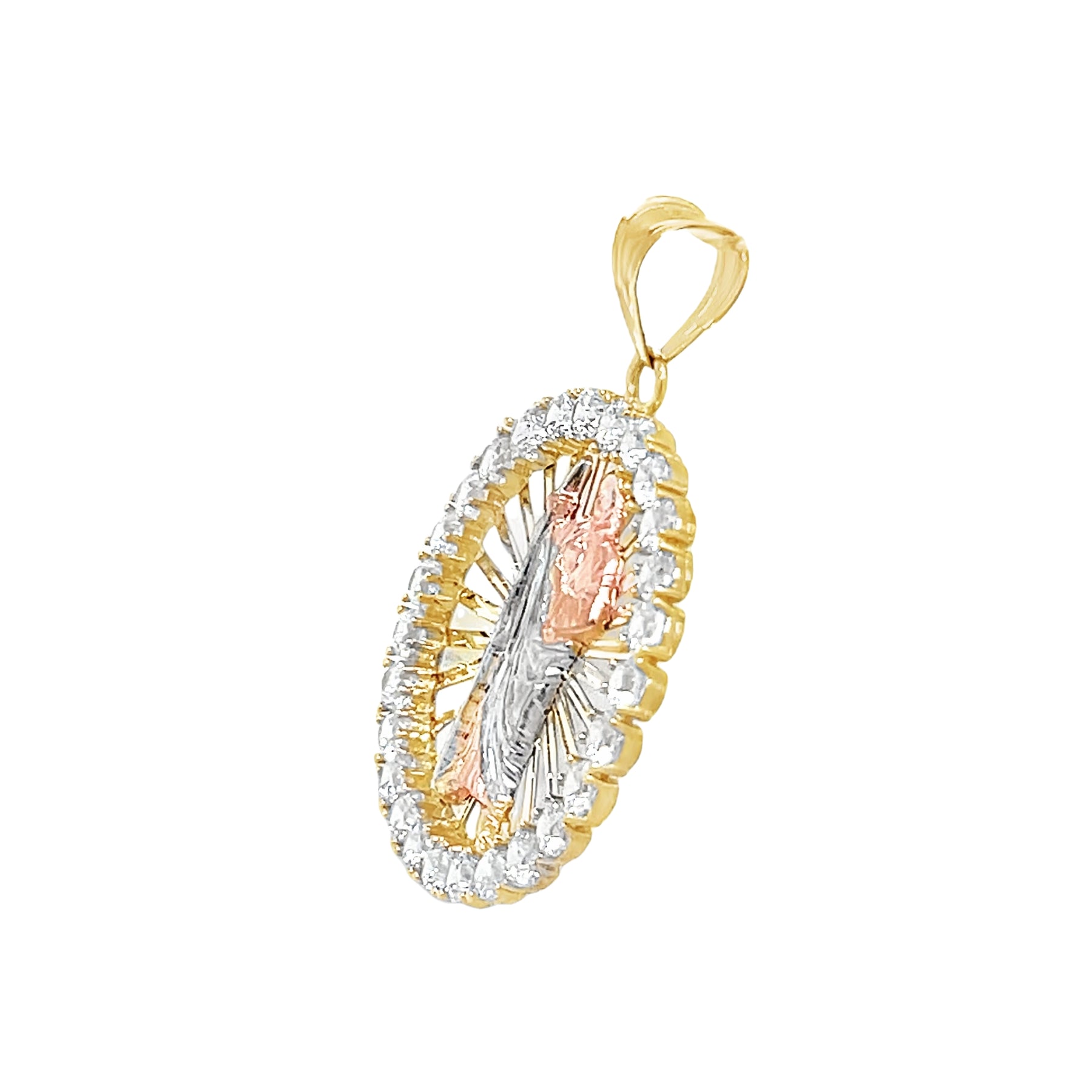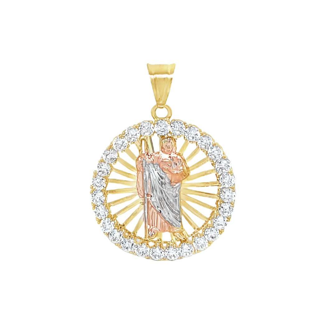Yellow 14 Karat Tricolor Religious Charms With Round Cubic Zirconiums Weight: 3.6 MM: 36 Saint Jude / San Judas