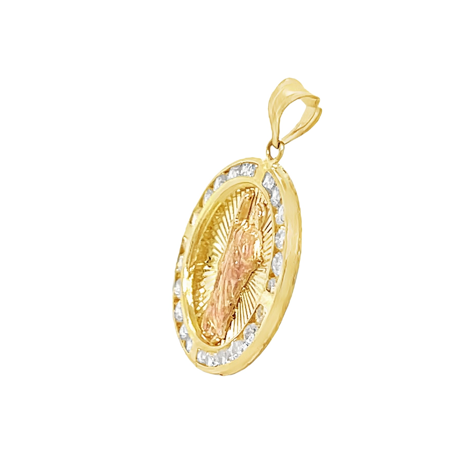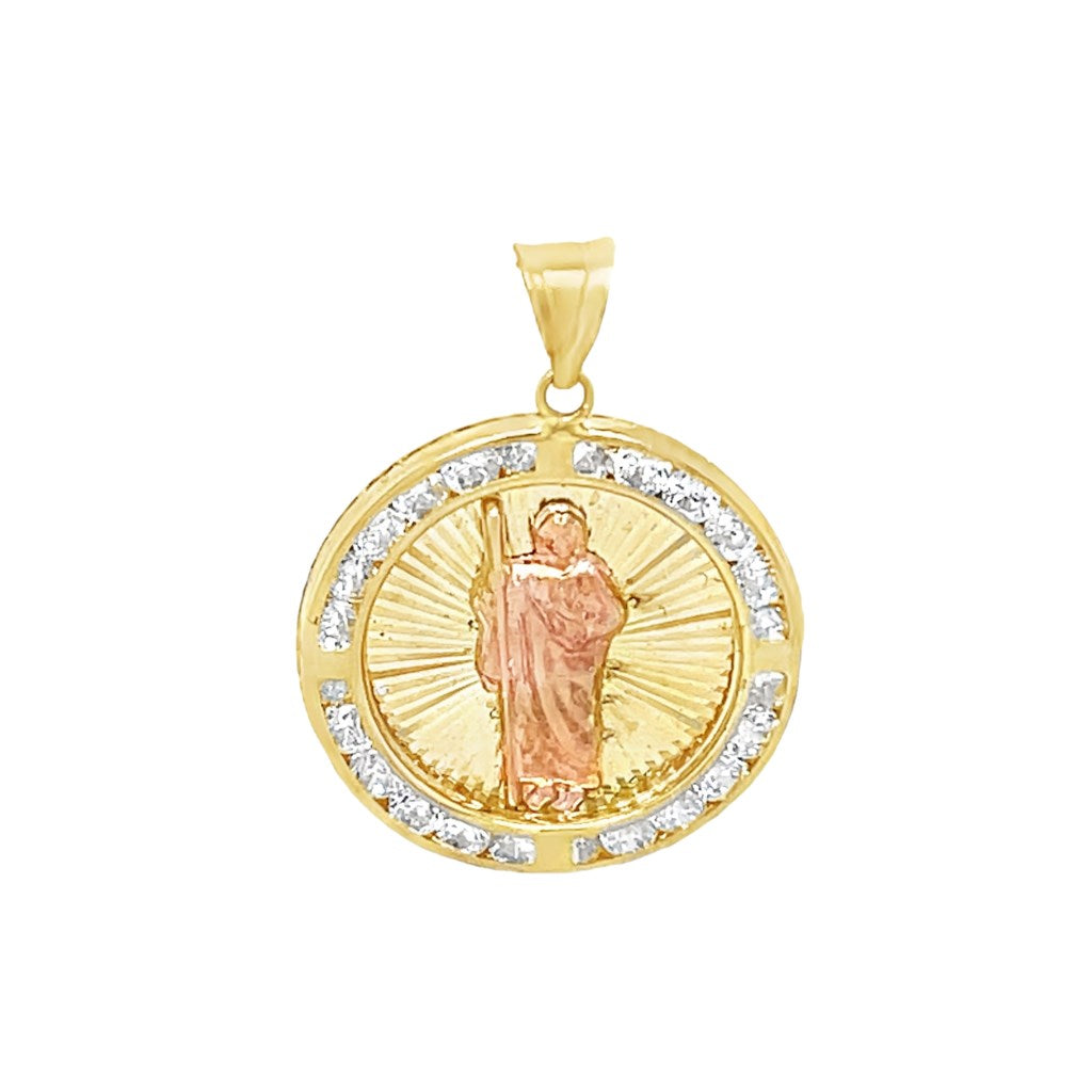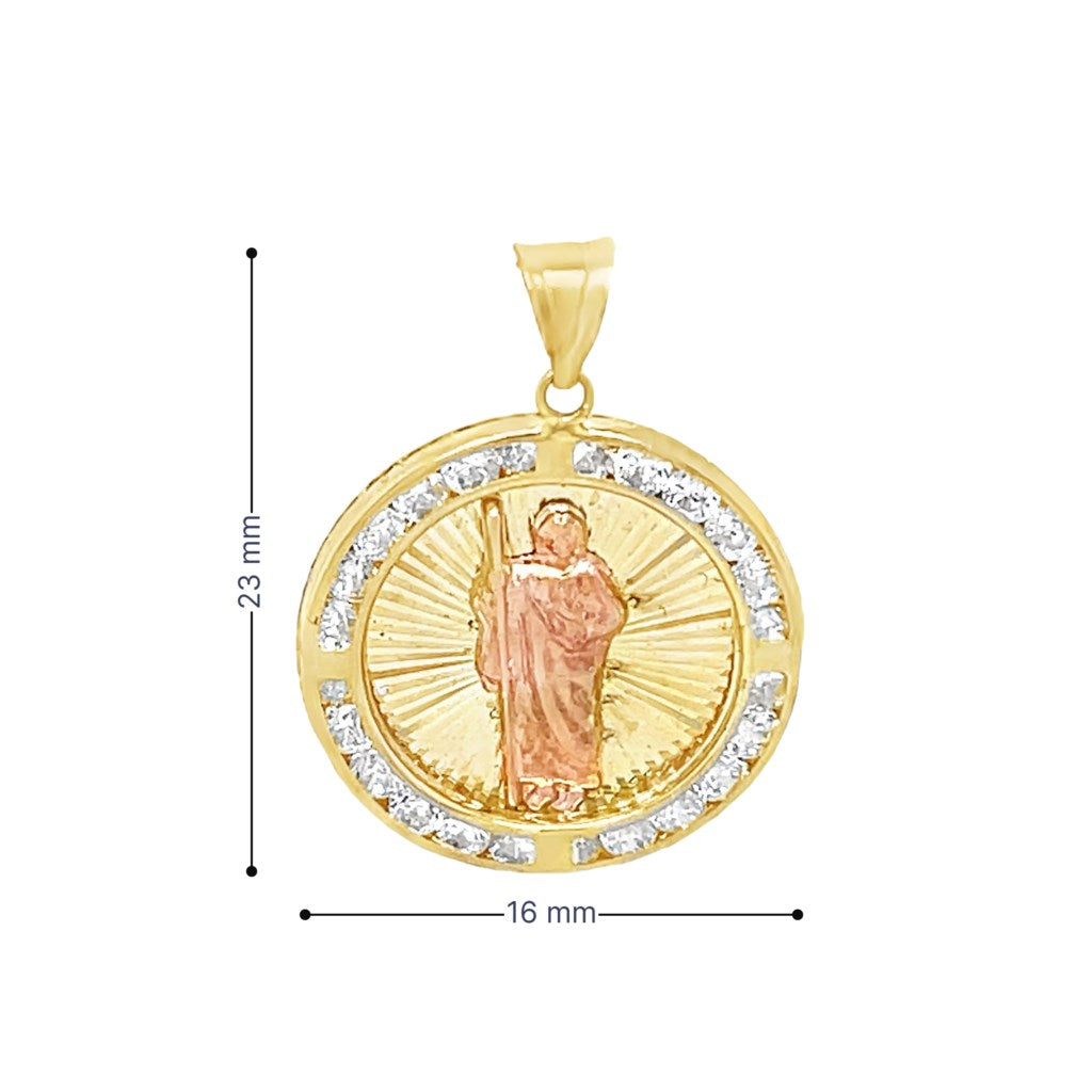 Yellow 14 Karat Tricolor Religious Charms With Round Cubic Zirconiums Weight: 1.4 MM: 23 Saint Jude / San Judas