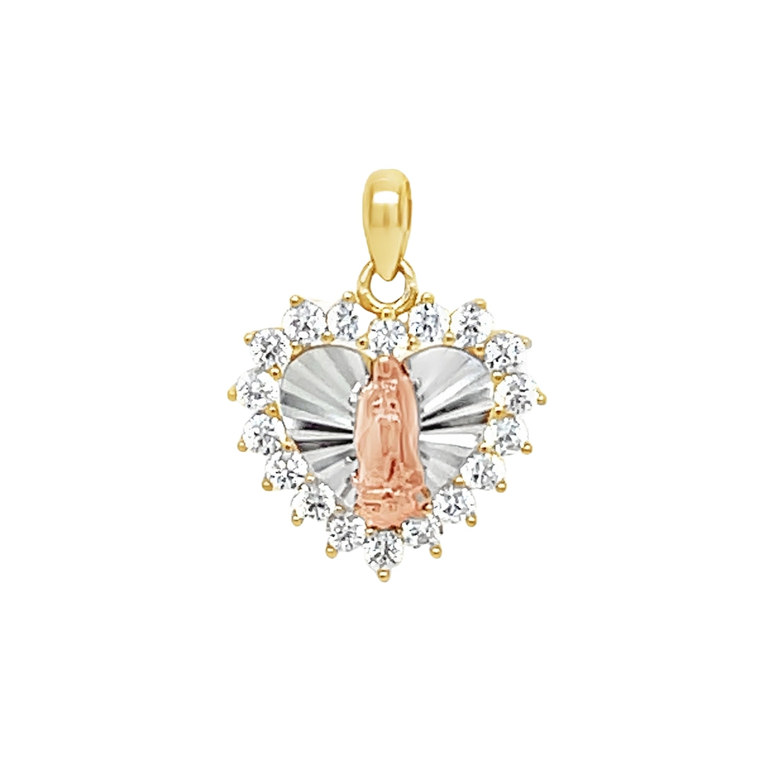 Yellow 14 Karat Tricolor Virgen Charms With = Round Cubic Zirconiums Weight: 1.4 MM: 17