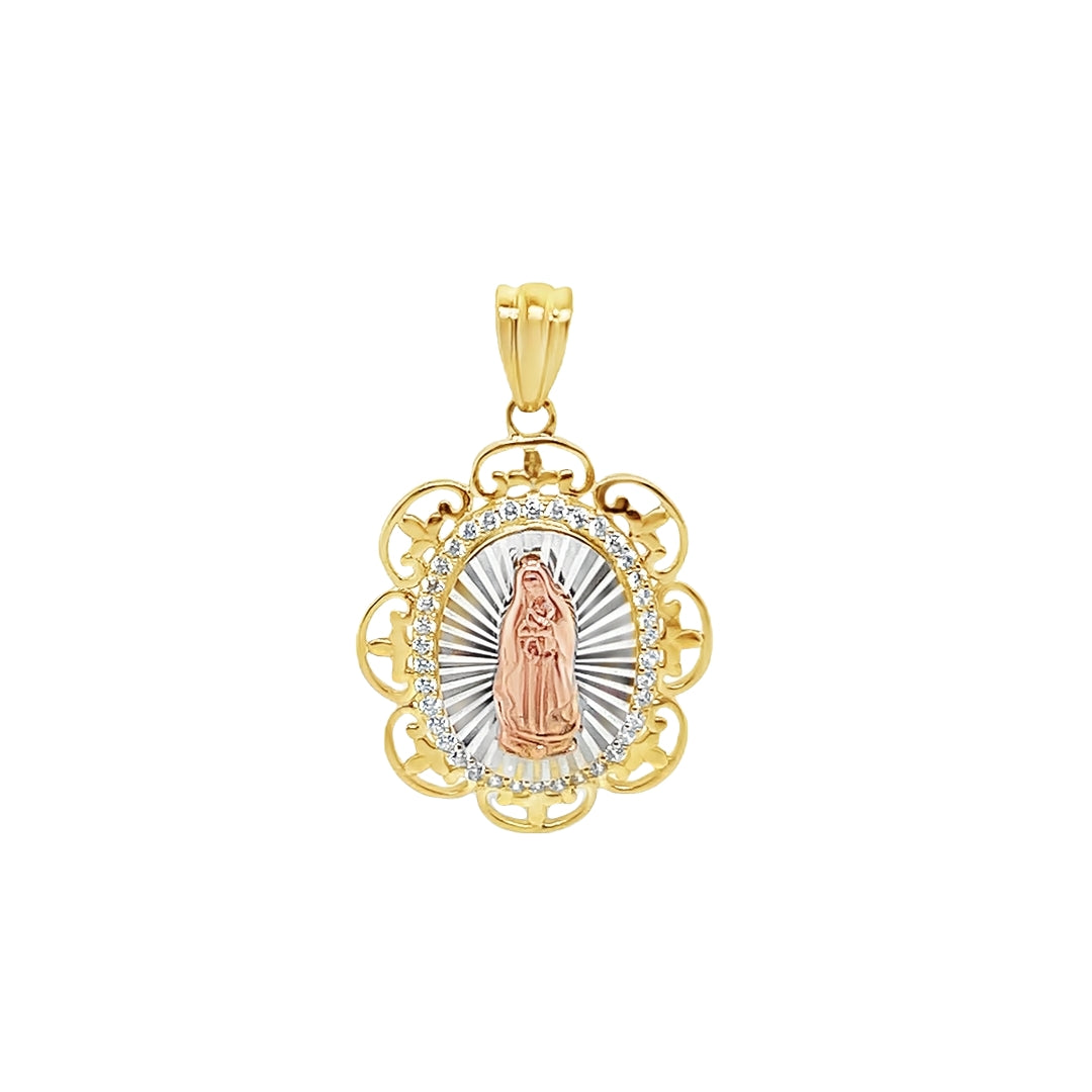 Yellow 14 Karat Tricolor Virgen Charms With = Round Cubic Zirconiums Weight: 3 MM: 31