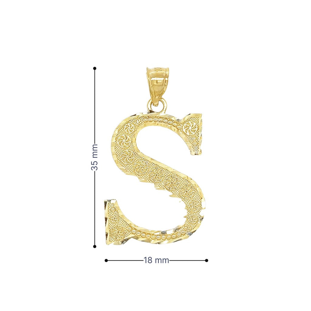 Yellow 10 Karat Initial Charm Weight: 2.2 MM: 35 Initial S / Inicial S