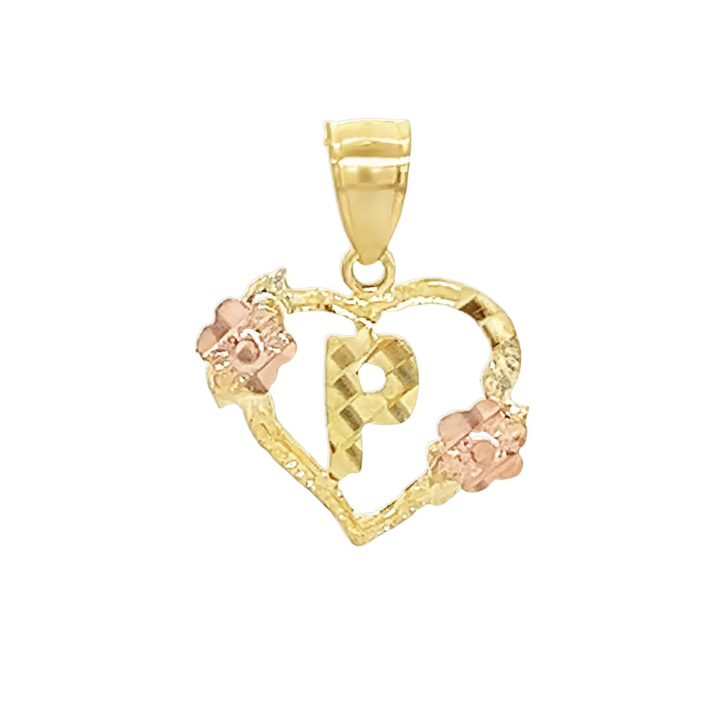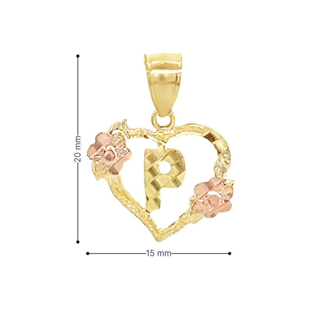 Yellow 10 Karat Heart Initial Charm Weight: 1 MM: 20 Initial P / Inicial P