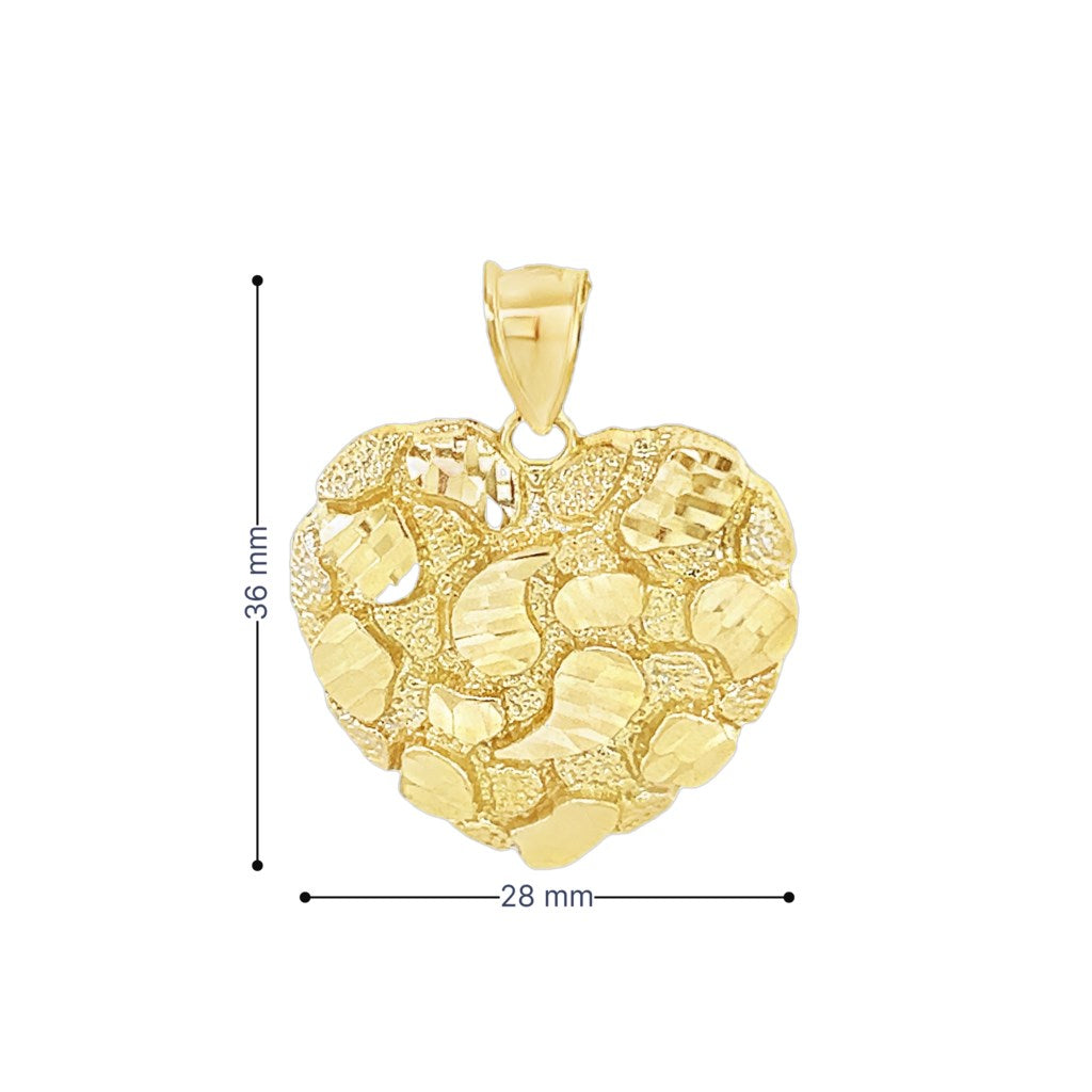Yellow 10 Karat Nugget Heart Charm Weight: 4.4 MM: 36 Heart / Corazon