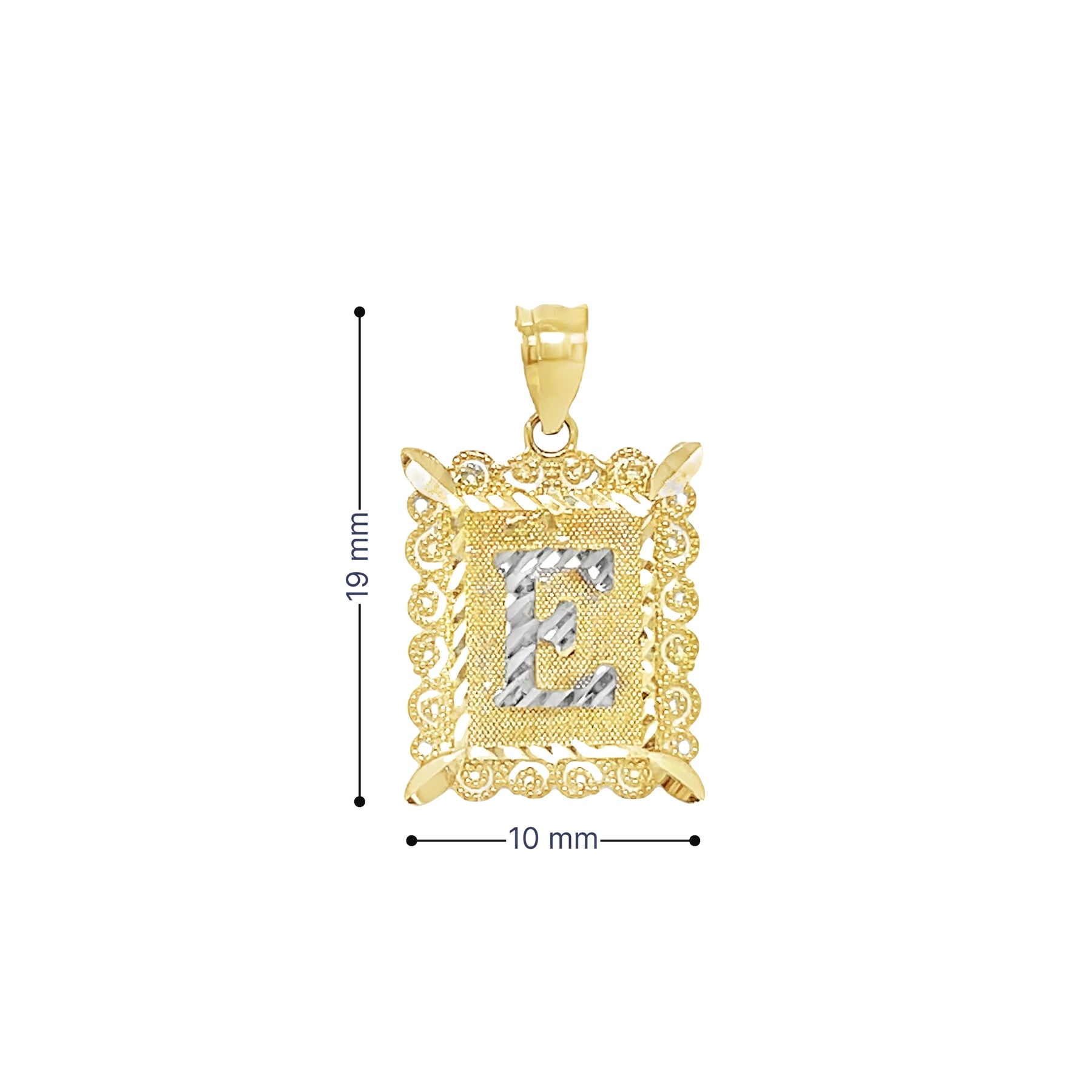 Yellow 10 Karat Initial Charm Weight: 0.8 MM: 19 Initial E / Letra E