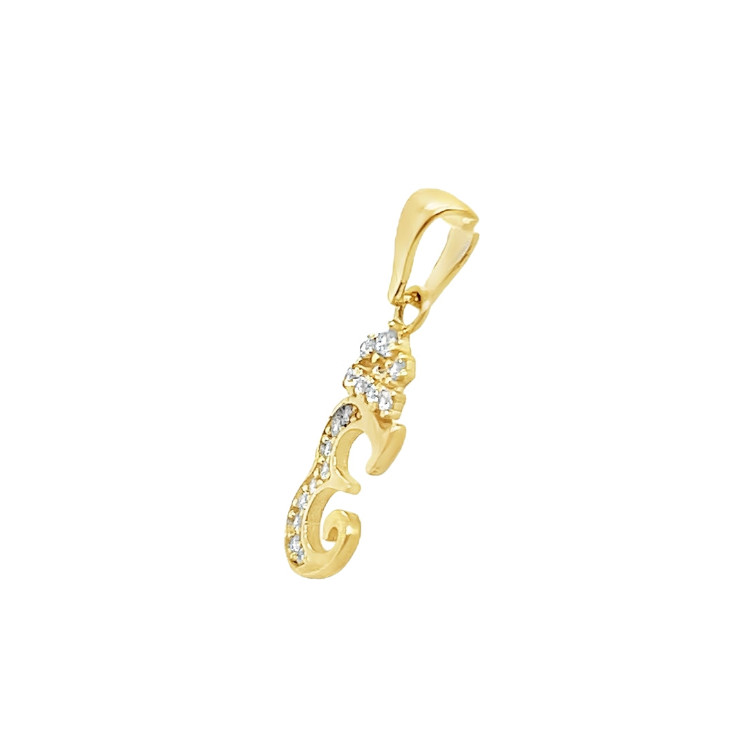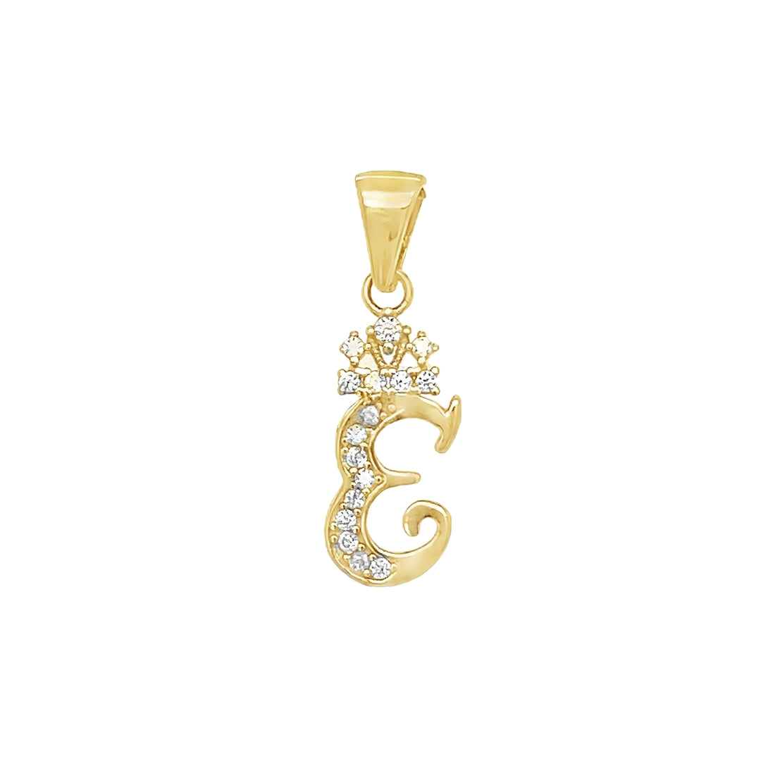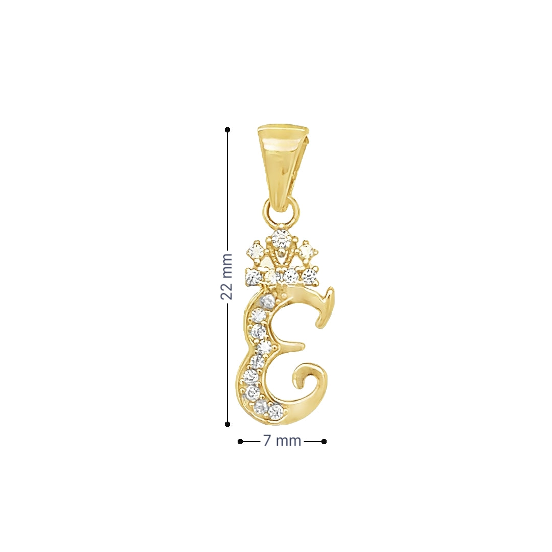 Yellow 10 Karat Initial Charm With = Round Cubic Zirconiums Weight: 0.8 MM: 22 Initial E / Letra E