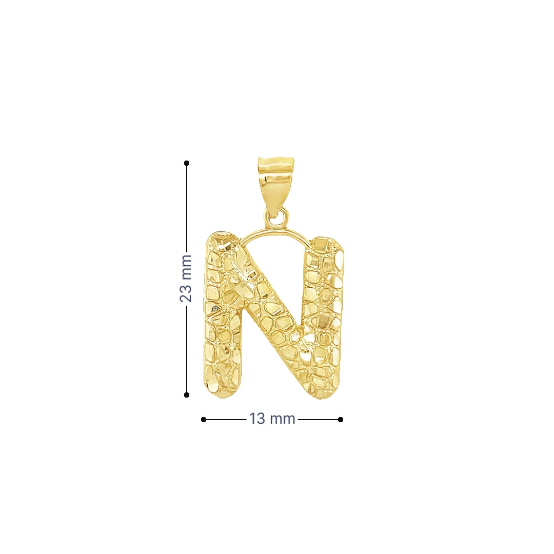 Yellow 10 Karat Nugget Initial Charm Weight: 1.2 MM: 23 Initial N / Letra N