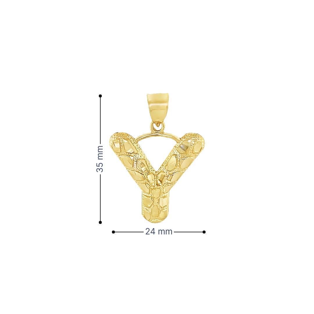 Yellow 10 Karat Nugget Initial Charm Weight: 2.4 MM: 35 Initil Y / Letra Y